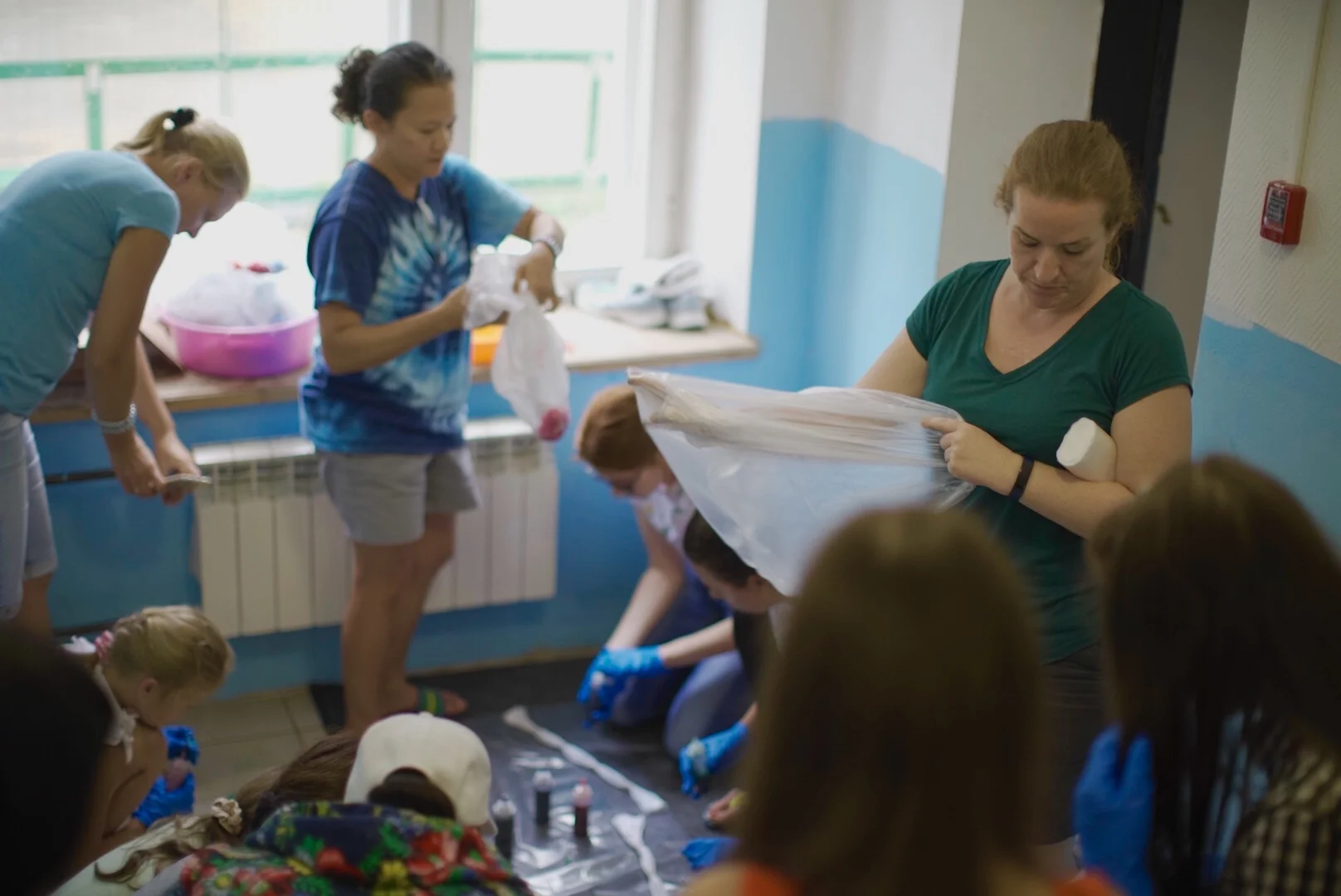 The daily afternoon craft sessions have been very popular; especially since it has been too wet to go outside. Y, Bev and our other team members from Maryland and Idaho have prepared daily crafts from bracelet making to tie-dye. Another hit have been the nightly American themed dinners. So far we have had an Olive Garden themed spaghetti and meatball dinner, a Wendy’s burger night, and a Chick-fil-A inspired chicken meal.